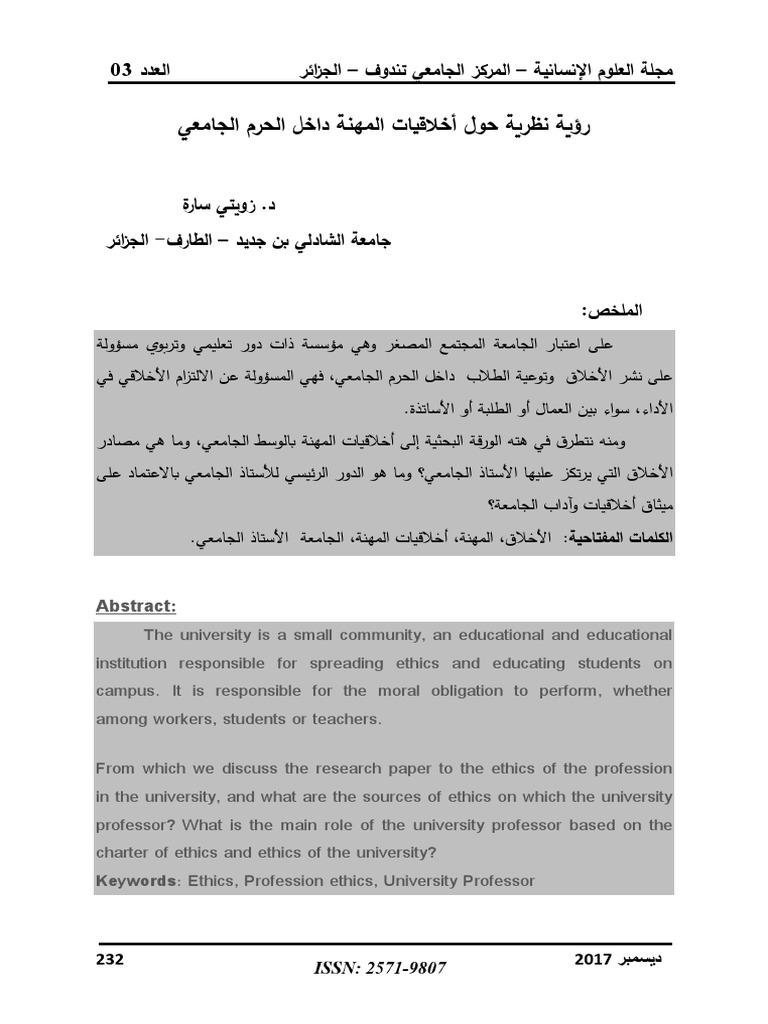 رؤية نظرية حول أخلاقيات المهنة داخل الحرم الجامعي
